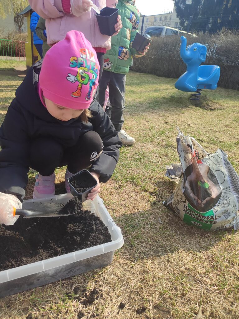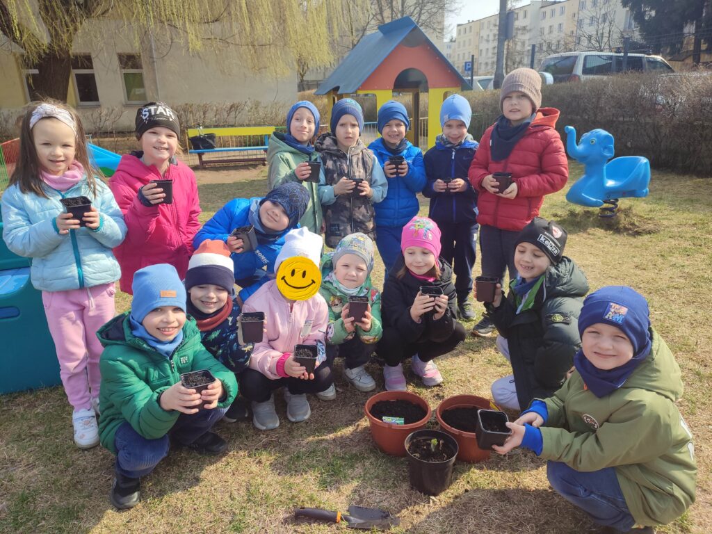 Grupa „Sowy” uczestniczyła w ciekawych zajęciach przyrodniczych. Dzieci dowiedziały się, w jaki sposób sadzi się rośliny oraz czym różnią się cebulki od nasionek. Rozmawialiśmy także o tym, czego rośliny potrzebują do wzrostu – ziemi, wody i światła.Następnie przedszkolaki zamieniły się w małych ogrodników. Dzieci sadziły cebulki na szczypiorek, kwiatki z nasionek oraz wysiewały owies wielkanocny.Zajęcia sprawiły wszystkim dużo radości. Teraz dzieci będą obserwować, jak ich roślinki rosną i się rozwijają.
