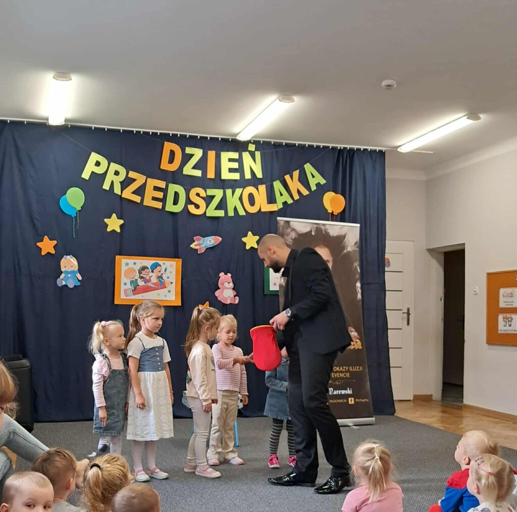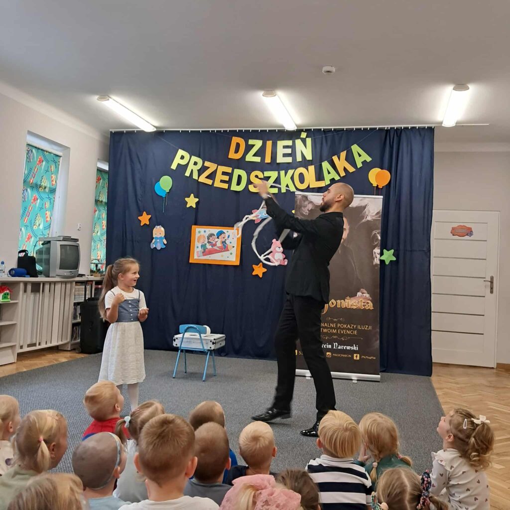 Z okazji Dnia przedszkolaka w przedszkolu gościliśmy iluzjonistę pana Marcina, który zabrał dzieci w swoją magiczną podróż. Pokaz iluzji wzbudził ciekawość dzieci, uruchomił wyobraźnię, a przede wszystkim sprawił, że dzieci nie mogły opanować śmiechu. Odwiedziny magika, to bez wątpienia wielka atrakcja dla naszych przedszkolaków!