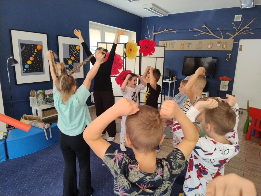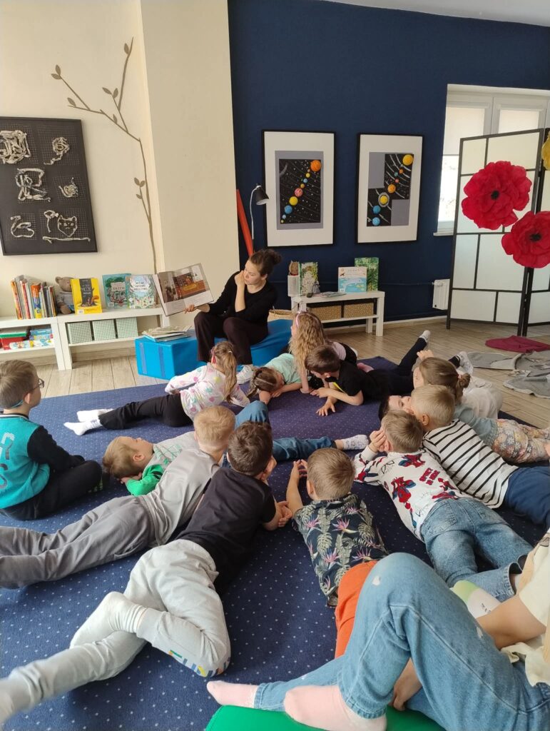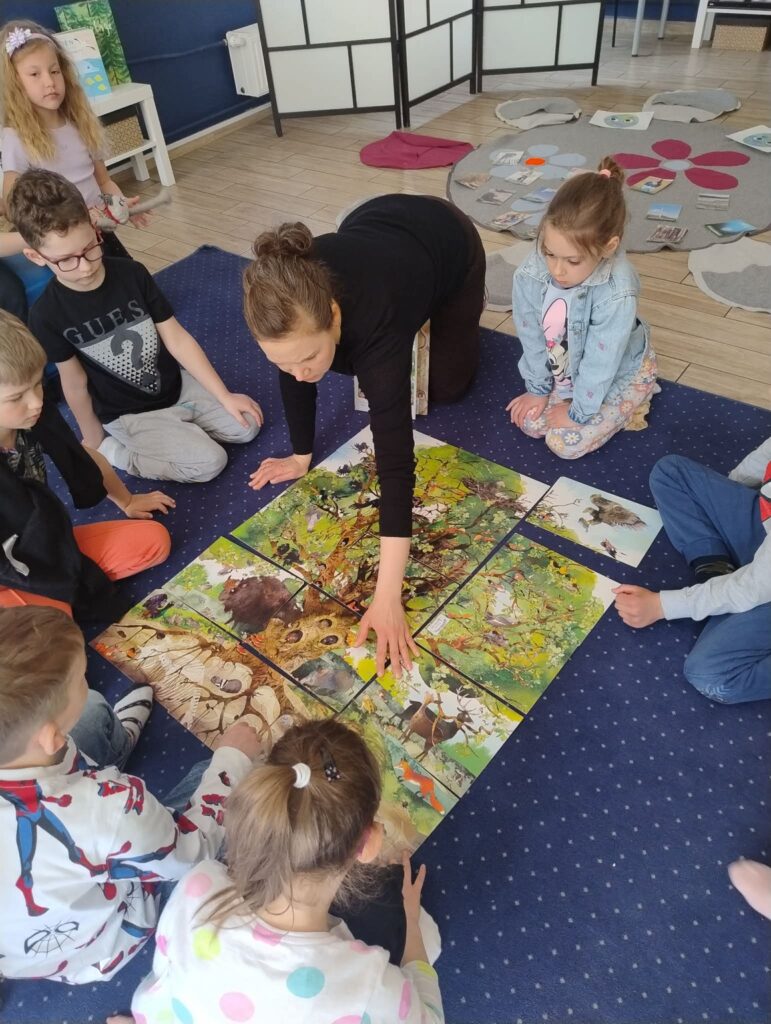 W dniu 24.04 dzieci z grupy ,,Kotki” odwiedziły bibliotekę, gdzie uczestniczyły w ciekawej lekcji tematycznej pt. „O czym szumią drzewa”. Podczas zajęć przedszkolaki dowiedziały się, jak ważną rolę odgrywają w przyrodzie oraz wysłuchały opowieści inspirowanych naturą.Dużą atrakcją było wspólne układanie puzzli, z których powstało ogromne drzewo. Dzieci chętnie brały udział w zabawach ruchowych – zamieniały się w drzewa oraz zwierzęta zamieszkujące ich korony, rozwijając swoją wyobraźnię i kreatywność.To była niezwykle inspirująca, radosna i pełna wrażeń wizyta! 🌳📚