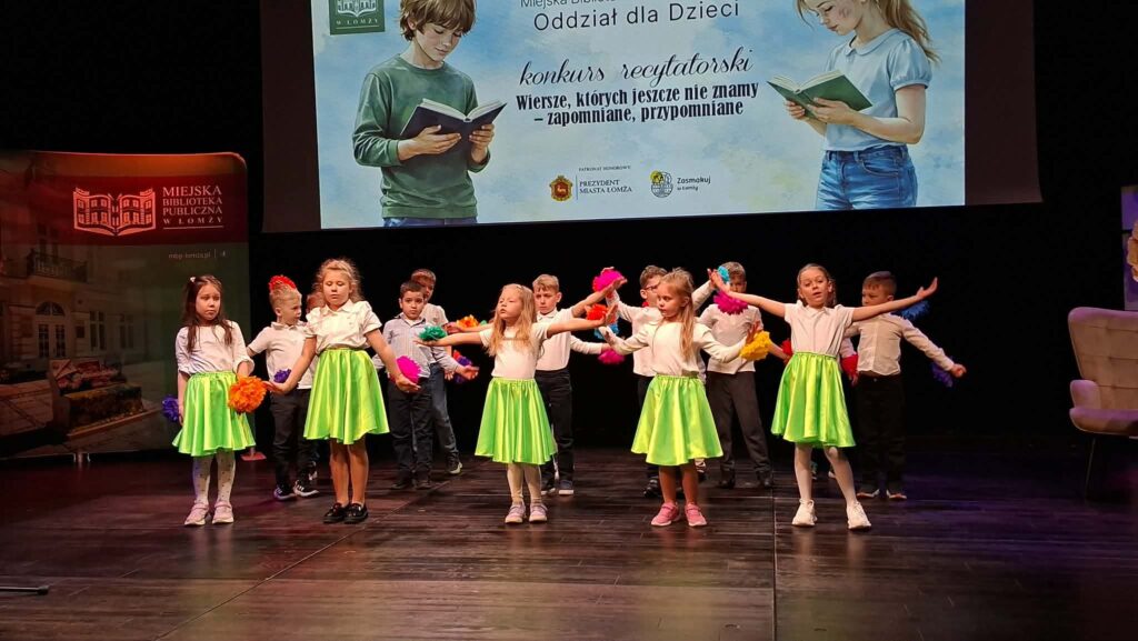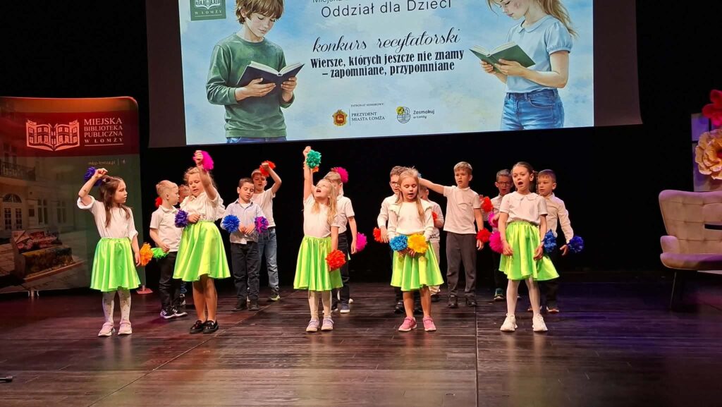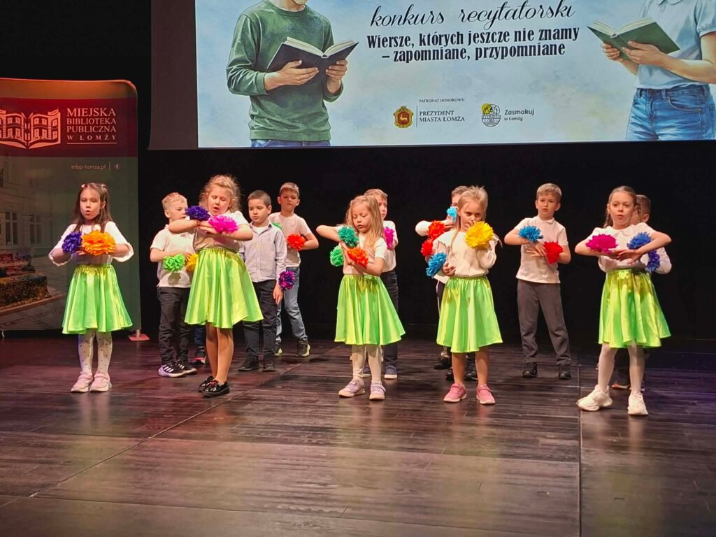 W trakcie Powiatowego Międzyszkolnego Konkursu Recytatorskiego w Hali Kultury w Łomży publiczność miała okazję obejrzeć uroczy występ artystyczny przedszkolaków z grupy „KOTKI”. Mali artyści z naszego przedszkola zaprezentowali się z ogromnym zaangażowaniem i radością, wzbudzając ciepłe reakcje widzów oraz nagradzani byli gromkimi brawami 👏 Za swój piękny występ dzieci zostały nagrodzone dziecięcymi książeczkami 🙂 Dziękujemy ❤️