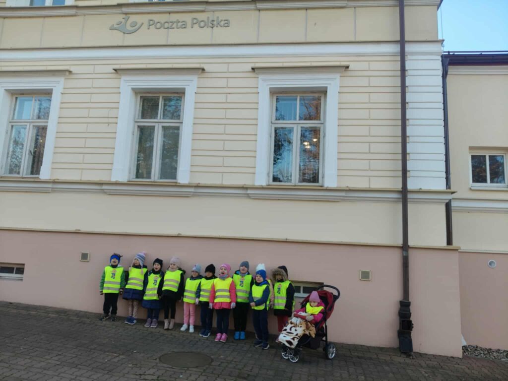 Dzieci z grupy Żyrafki wybrały się na wycieczkę do Urzędu Pocztowego w Łomży przy ul. Plac Pocztowy 1. Podczas wizyty przedszkolaki mogły zwiedzić zakamarki, które na co dzień nie są dostępne dla wszystkich. Dzieci zobaczyły jak wygląda praca listonoszy oraz gdzie sortowane są listy i paczki. Wspólnie prześledziły drogę listu od nadawcy do adresata. Przedszkolaki miały okazję zobaczyć urządzenia wykorzystywane przez pracowników poczty. Dla utrwalenia poznanego procesu wysyłania listów, dzieci nadały własną przesyłkę do przedszkola.